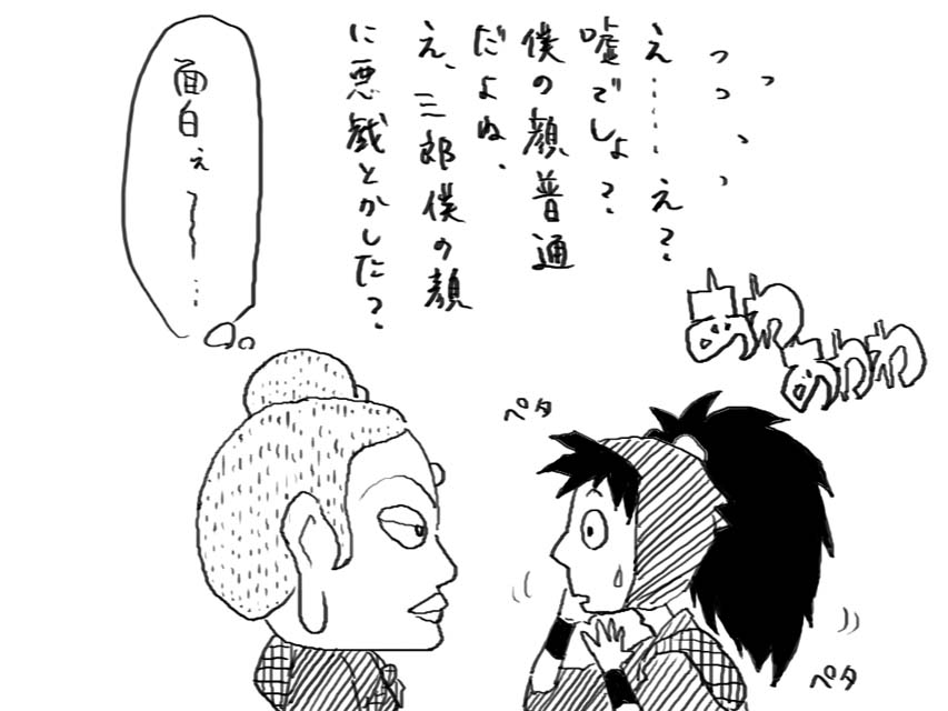 雷蔵からは同じ臭いがしますね。皆のカモにされそうです。だから三郎もずっとくっついて回ってるんでしょうね。騙された雷蔵は可愛いに違いない♡ネタバレ後「もー!!」とか言ってポカポカ殴ってくるけど、私は雷蔵は馬鹿力希望なんで、そのポカポカが普通の人のボカスカレベルだとなお良いです。思ったより痛くて三郎も「ちょっ……」ってなる。雷蔵には常に三郎の予想の遥かに上回る反応を示し続けて欲しいです^^