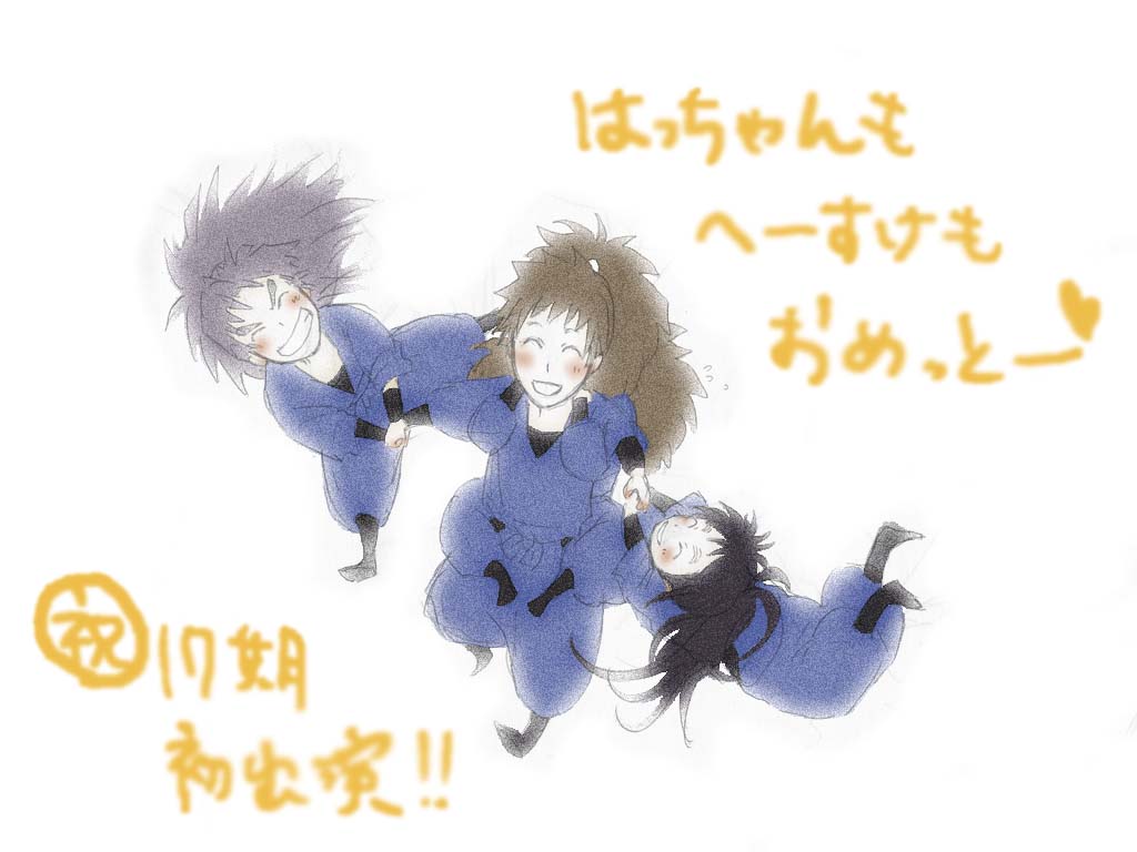 そんな訳でお祝いしたくてしょーがなかったから急いで描いた。めでた過ぎる。八左はop出演に随分かかったけど勘ちゃんはあっつーまだったね。髪はやはり焦げ茶色だったのか、どんまい自分ww
