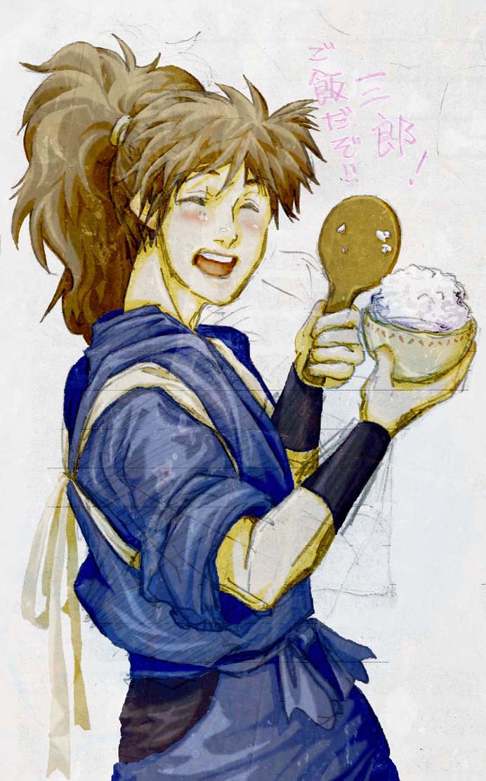 さてなんでしょうこの愛らしい雷蔵わ。三郎にご飯よそっとります。悪い三郎、めしあげていいかなそのご飯。