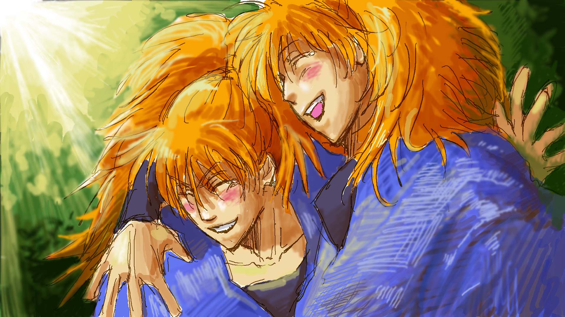 仲良しな双忍描いてみました。きゃっきゃしてるといいですよね双忍♪雷蔵は仰け反って笑って、三郎は腹抱えて笑うよきっと。可愛いよ可愛すぎるよ双忍。笑い方で区別出来るとか。なつみかんのツボの上で大縄跳びですよ双忍。縄回してるのは八左と兵助ですよまぢ反則。