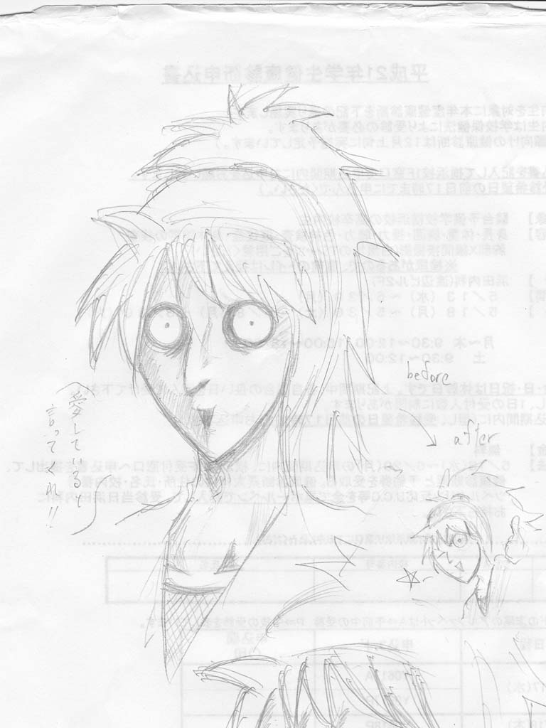 持って来たのは微妙な裏紙。描いてあったのはこの「一体誰を殺したいんだ」と聞きたくなるような目をした……