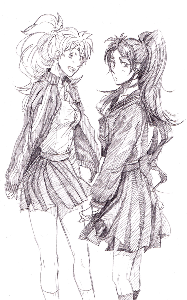 イラストにょたなんで注意してください、雷子と兵子です!苦手な方はスルーで!黒セーラー……というかセーラーに憧れました、ずっとブレザーだったんで。美少女戦士世代だからセーラーに大しての憧れはハンパないです////