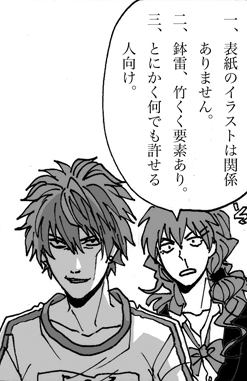 それから大阪といえばもう少しで忍FES3ですね!!私は用事があって行けないんですが、当日は先日サンプルをあっぷした合同誌と、庄ちゃんカラーイラストアンソロジーに参加させていただいておりますので、よろしくお願いします☆行かれる方、行けない人の分も是非是非楽しんできて下さい!泣いてない!