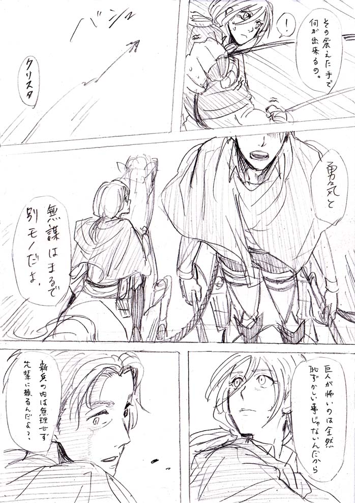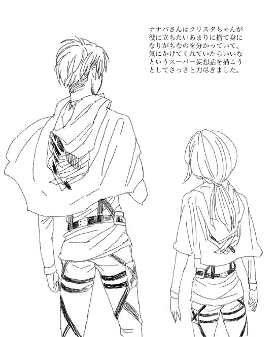 FOW3お疲れ様でした!新刊シリアス過ぎて少し不安だったんですが感想などいただけて安心しております////進撃イベントはじめてだったのですがとても楽しかったです、来て下さった方ありがとうございました!画像は無配の兵長とナナバさんになります。決して血みどろなんじゃない、書道で張り切っているんです。