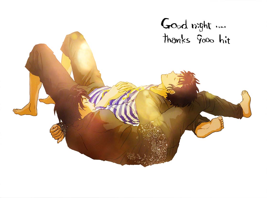 なんでこんなポーズになったかって、始めは皆で一緒に深夜TV観てたんですけど、まず雷蔵が脱落して八左の膝の上で寝て、次に三郎がうとうとしてきてこっくりこっくりなっているのが危ないんで八左が嫌がる三郎を無理矢理寄っかからせましたwwで、最後に八左が寝て朝になると。こういう絵です♪限りなく分かり辛いwwいずれにせよ、現パロだろうが室町だろうが完全に双忍の保護者な八左です^^