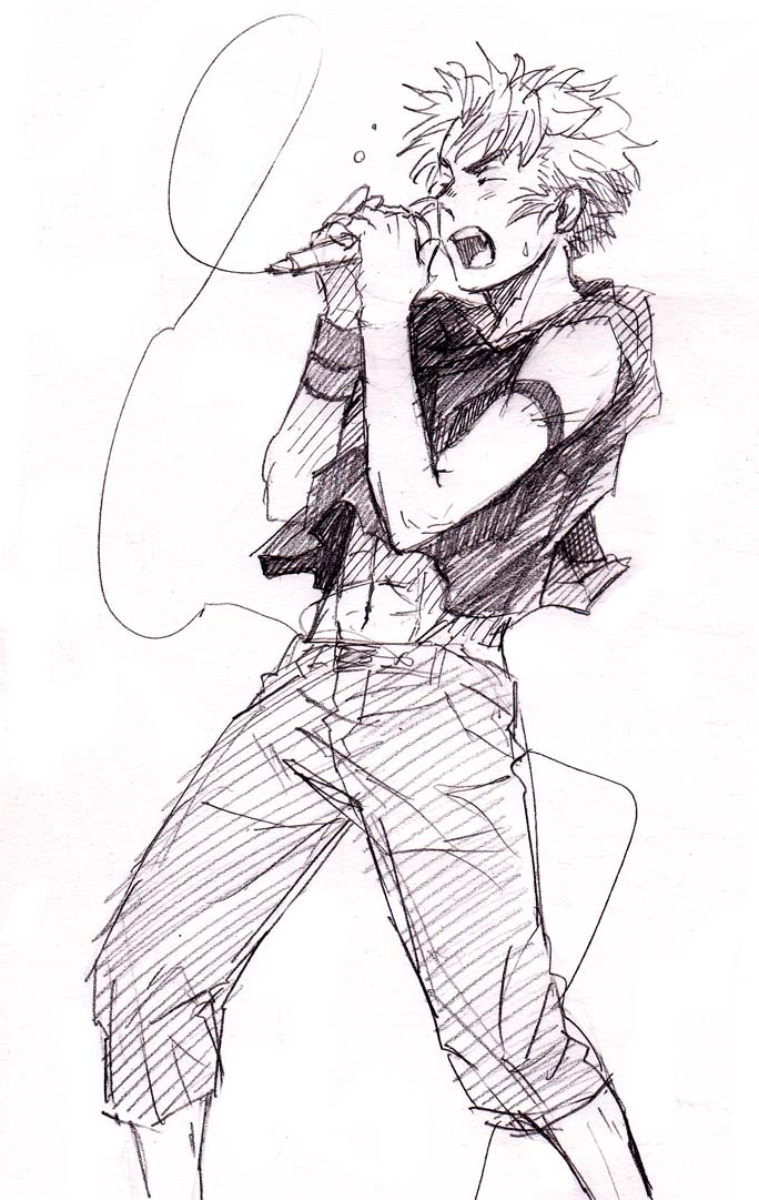 折角誕生日なのでラクガキでも放出しとこうか!ということでろ組のライブ、しかも全員ボーカルというwwww雷蔵は優しい歌でもいいですけど格好いい歌一生懸命歌っていても可愛いかなと////三郎はうざいくらい格好付けてるくらいが丁度いいかとwwんでもって八左ヱ門は力技勝負です☆全員右向きなのは私が右向き描きやすいからですすんませんww